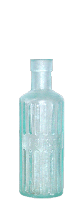 Possibly South Africa's most famous poison bottle... Gilbertsons green Wedge. Embossed "REGd-30th-OCTr-1861" seen here in two sizes 1oz and 6oz together with a Toothpaste Pot & Lid, a Baby Feeder top and an A. Davison / Kimberley Chemists bottle embossed underneath On the right a bottle which I have only recently (June 2005) re-discovered in my shed... A stunning early (by South African standards) c 1860 ELEPIZONE / A / SAFECURE / FOR / FIT / & / EPILEPSY / H.G. ROOT / LONDON in an unusual very light-blue glass. Click on bottle for enlargment of embossing on bottom. |